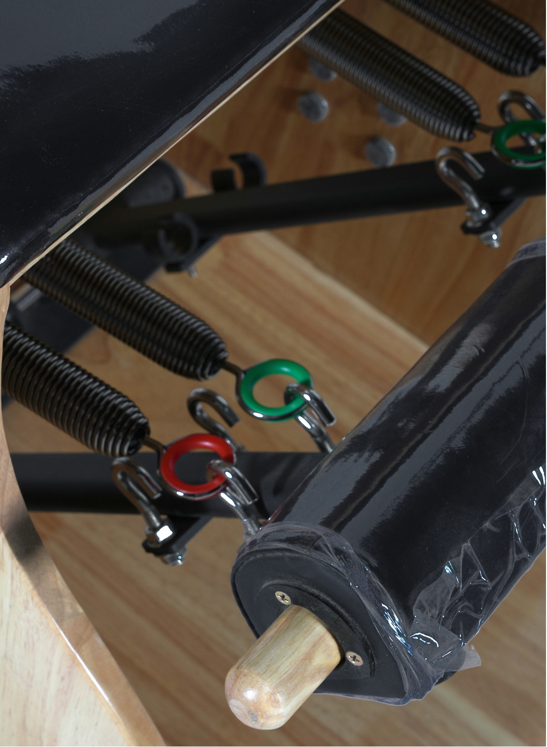 Featuring four resistance springs two light (green) and two heavy (red) the Combo Chair provides six possible resistance levels, allowing instructors and users to finely tailor the difficulty of each exercise. The vertically adjustable side handles accommodate users of all heights, while the dip-coated rubber handles ensure a premium grip during balance, strength and coordination work.